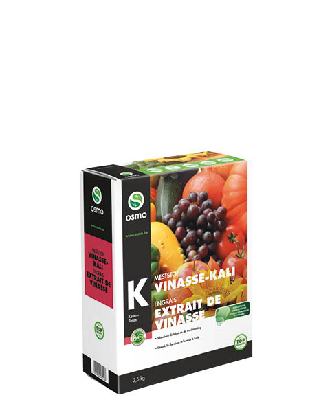 Extrait de vinasse est une source naturelle de potassium et stimule la floraison et la mise à fruit. OSMO Extrait de vinasse convient donc parfaitement comme engrais pour les plantes à bulbe et à tubercules (betterave rouge, oignon, carotte, radis, céleri-rave, pomme de terre, tulipe, bégonia tubéreux). OSMO Extrait de vinasse améliore la floraison et la mise à fruit, raffermit les plantes et les fruits. OSMO Extrait de vinasse est riche en matière organique. Cette matière organique est transformée sous l'effet de l'activité biologique du sol dont la structure est ainsi améliorée.